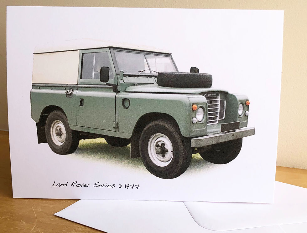 Land Rover SWB Series 3 1977 Cards (5x7in): Birthday, Anniversary or Plain